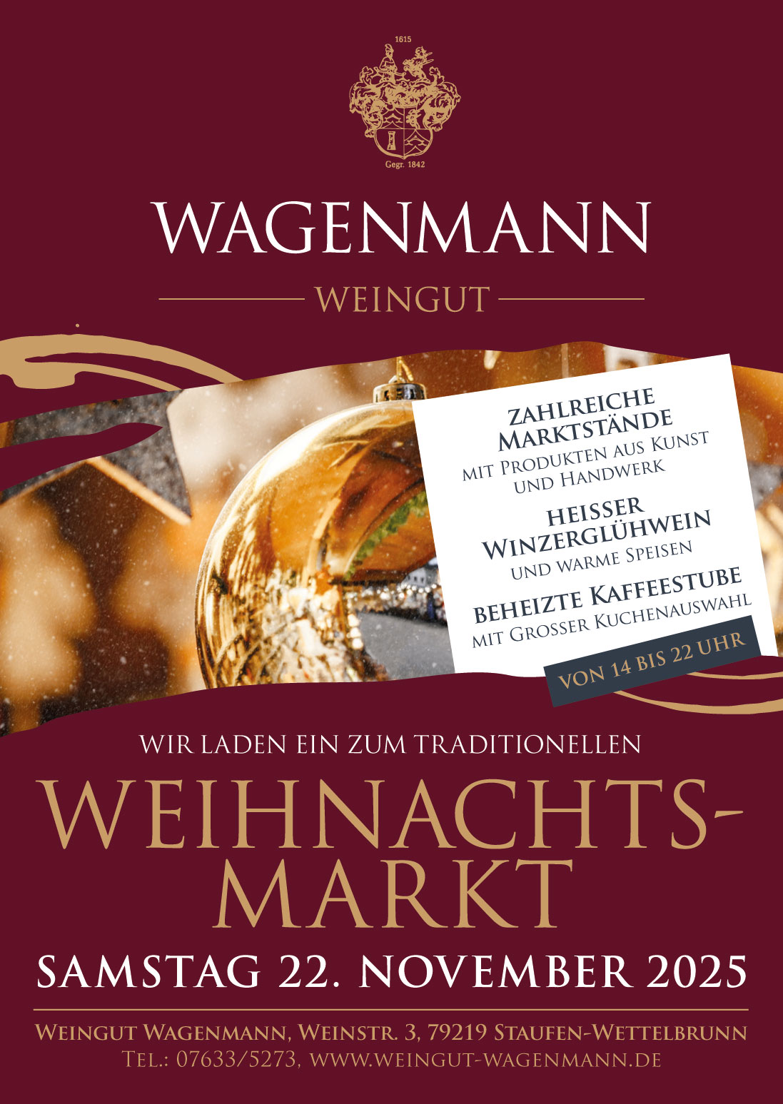 Wir laden ein zum traditionellen Weihnachtsmarkt im Weingut Wagenmann in Wettelbrunn.